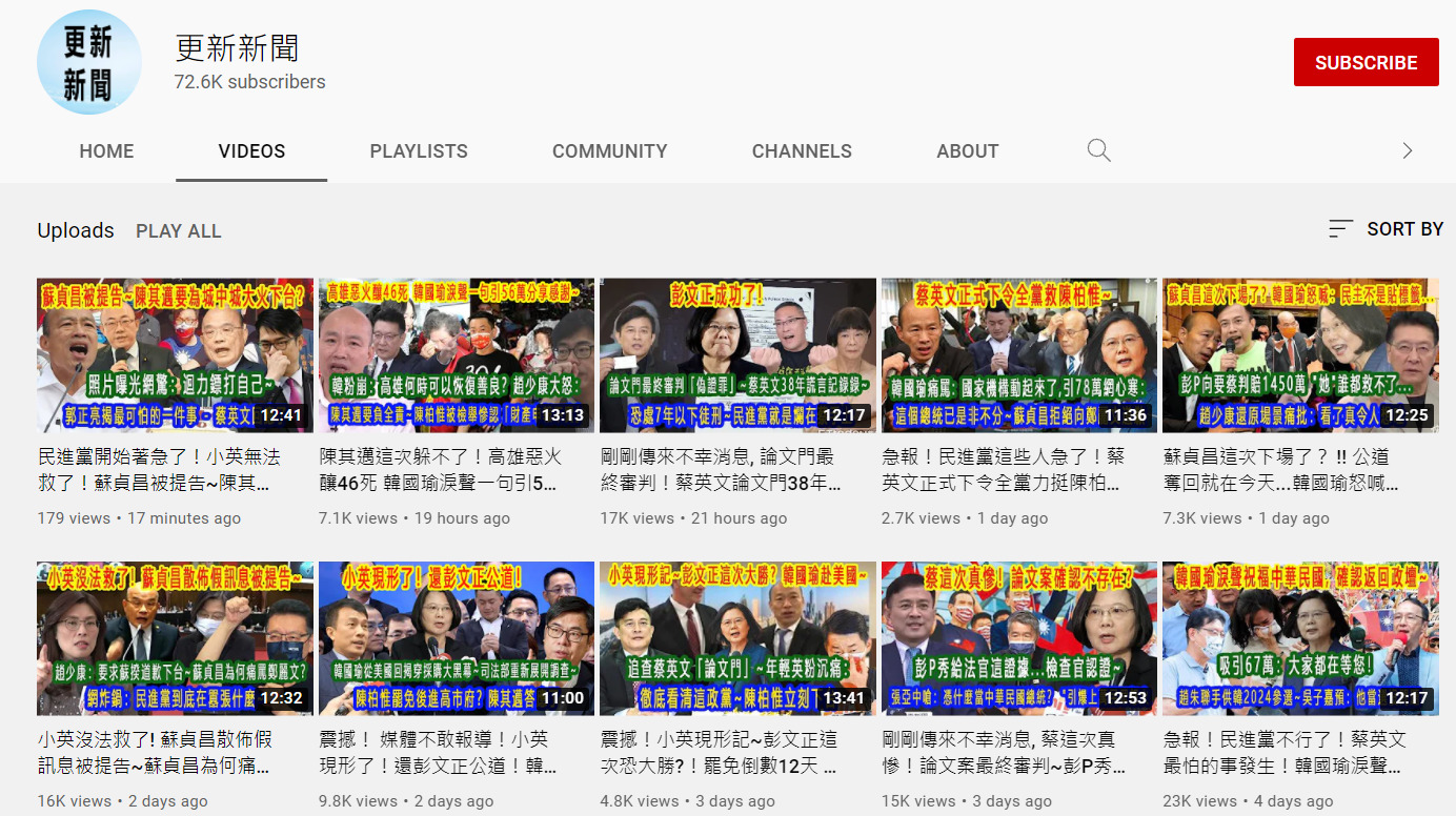The second advantage is the design of the thumbnail and clickbait title. Appendix A2 shows screenshots of the front page of all puppet-anchor YouTube channels on October 10, 2021. All eight of the YouTube channels that appear in this study have similar thumbnails that feature the following: photoshopped pictures of influential people from China, Taiwan, and sometimes a western country, such as the United States or Australia, as well as attention-grabbing headers with provocative titles in red, yellow, green, or blue. This phenomenon is known as clickbait, or the use of psychological methods to capture the attention of viewers resulting in a click on the title, which would then lead to the puppet-anchor video. There are two easily identifiable aspects of clickbait: the use of provocative syntax and diction as well as the use of eye-catching images to draw the attention of viewers (Blom and Hansen 2015; Chen, Conroy, and Rubin 2015; Bazaco, Redondo, and Sánchez-García 2019). The provocative aspect may take advantage of viewers’ natural inclination to want to satisfy their curiosity (Loewenstein 1994; Lu and Pan 2021; Potthast et al. 2018). The clickbait titles purport to offer information that the viewer does not already have, and this prompts the viewer to want to click to fill the information gap.