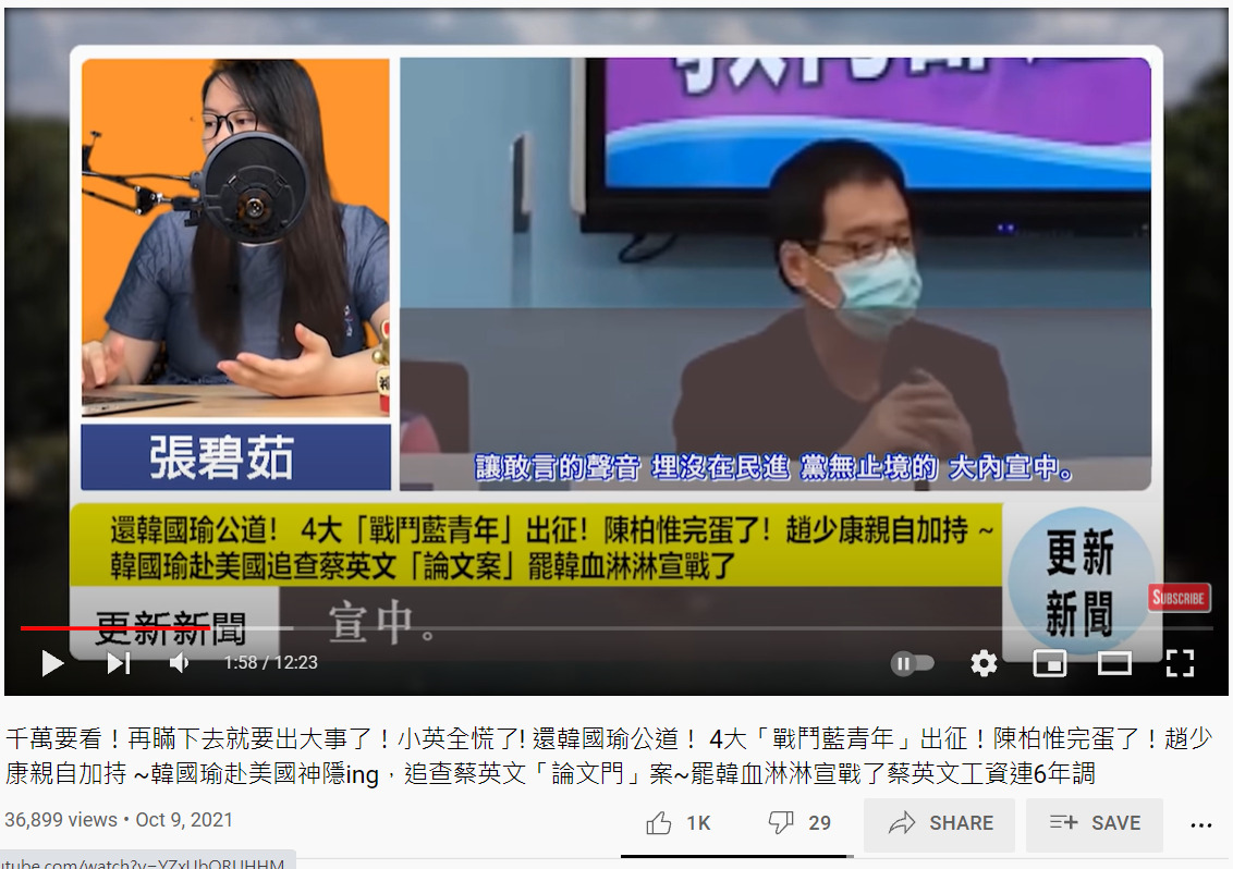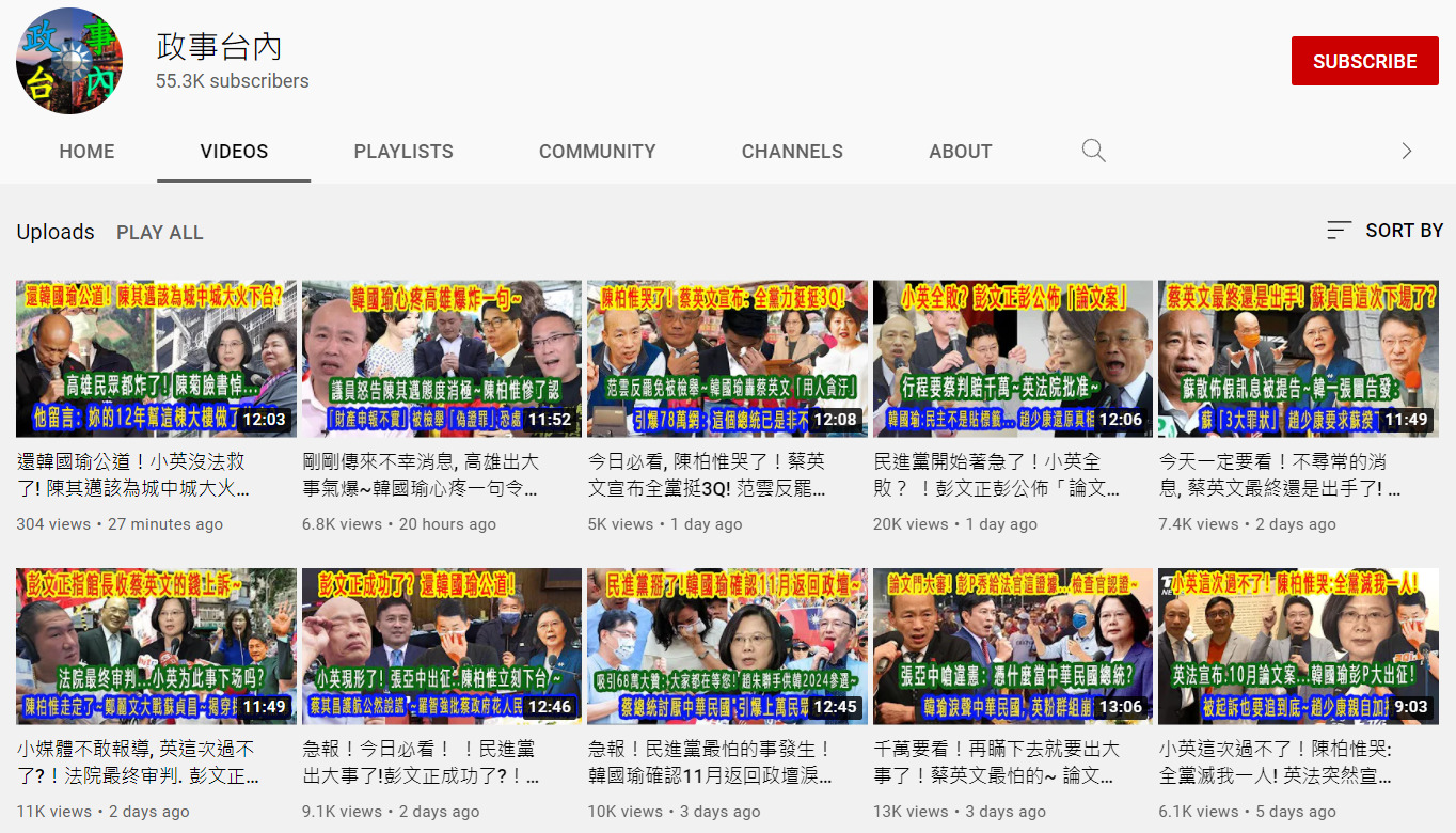The content of the videos considered here focused on attacking the ruling party in Taiwan, building up the legitimacy of China, and delegitimizing U.S. involvement with Taiwan. Mass produced videos that appear as legitimate news and use clickbait keywords to achieve a high number of views would serve on the mainland the same strategy as detailed above, but with the reverse goal of elevating negative discussions and anti-Taiwan-government sentiment.